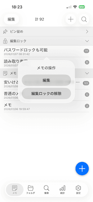 パスワードを設定することで、アプリ起動時にロックをかけたり、プレミアムプランの 編集ロック機能 でメモやフォルダに個別ロックを設定できるようになります。
