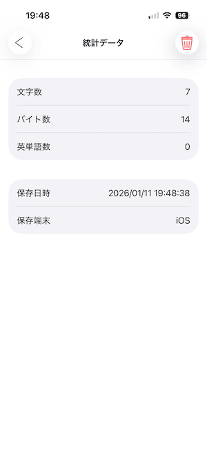 履歴一覧画面で、履歴のセルをタップすると、履歴の詳細画面が表示されます。