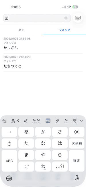 すべてのフォルダを横断してメモの タイトル・本文 を検索したい場合は、「検索タブ」 を利用してください。