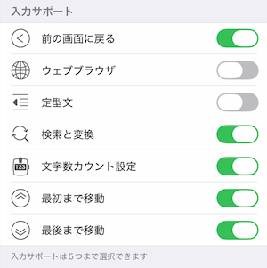 入力サポートでは、メモの入力画面下部に表示するメニューを変更できます。